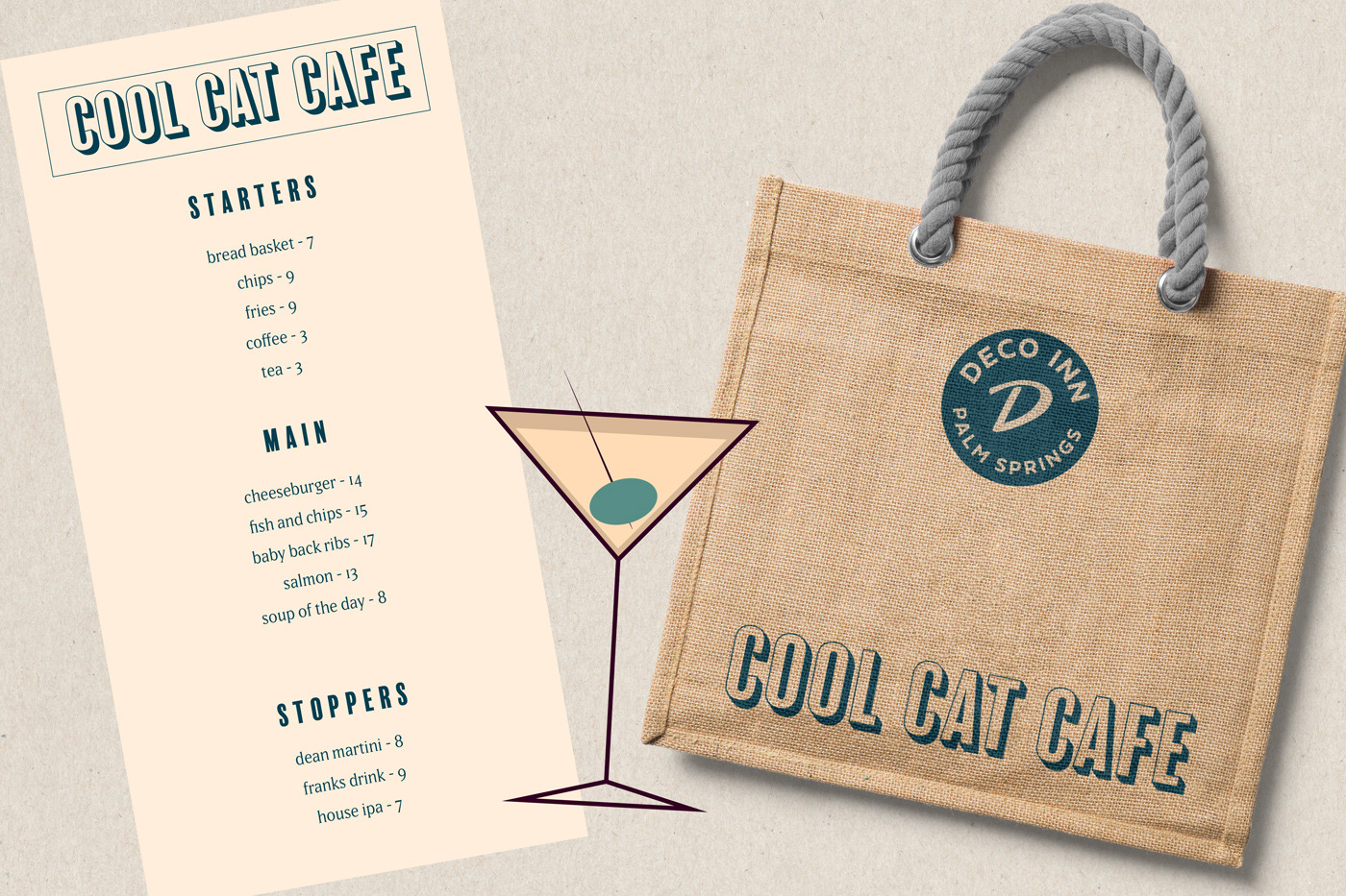 A design for a hotel brand in Palm Springs California. Branding, brand strategy, and concept art were used.